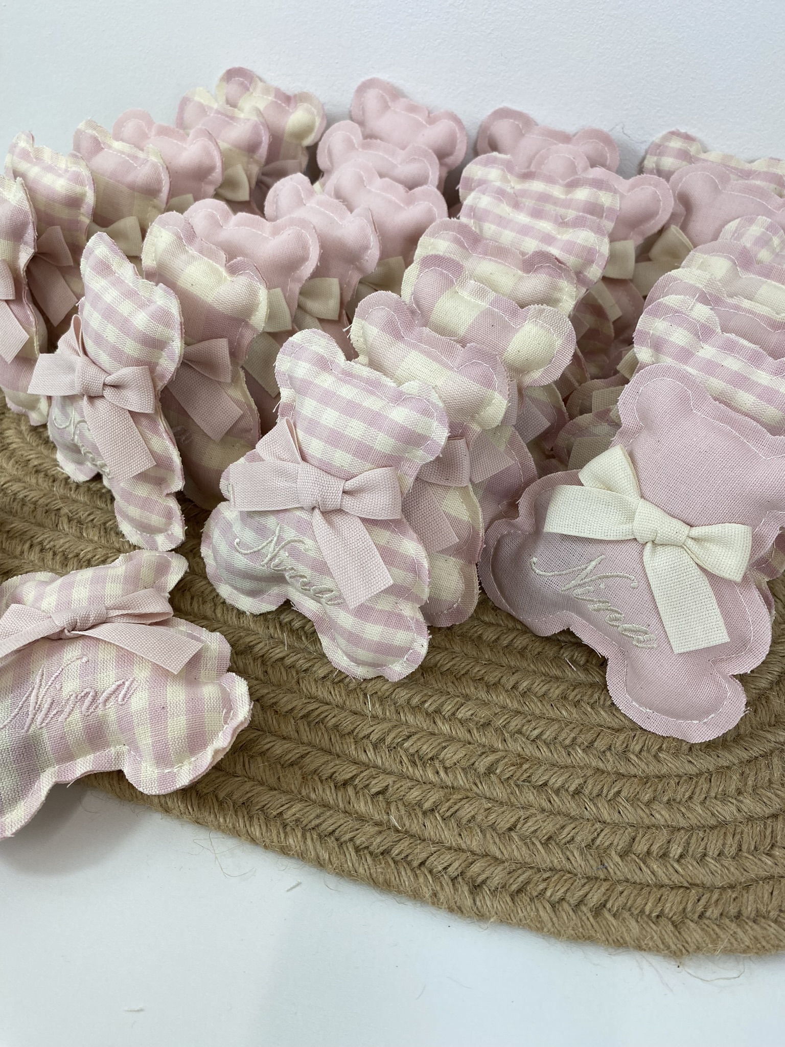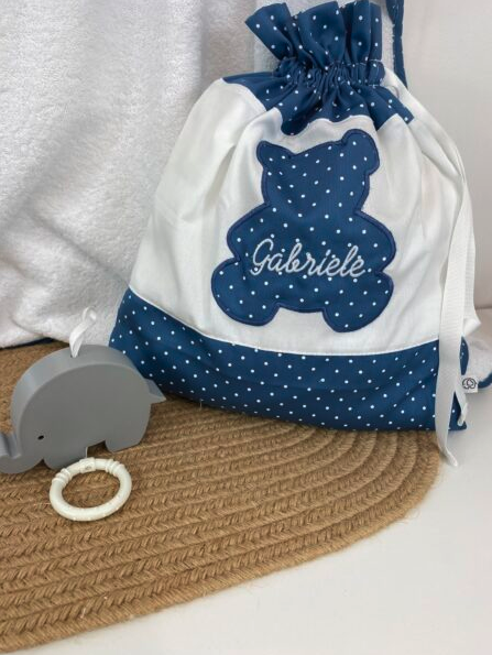 Disponibili diversi tessuti e fantasie. E' possibile modificare la dimensione su richiesta, aggiungere e sostituire pendenti, scegliere carattere ricamo.