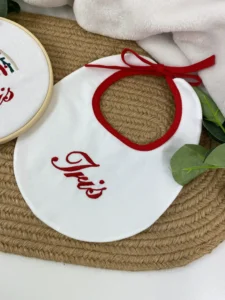 Tempi di Lavorazione (Sartoria): Dal momento dell’ordine, impieghiamo circa 7/10 giorni lavorativi per ricamare, cucire e preparare il tuo bavaglino.