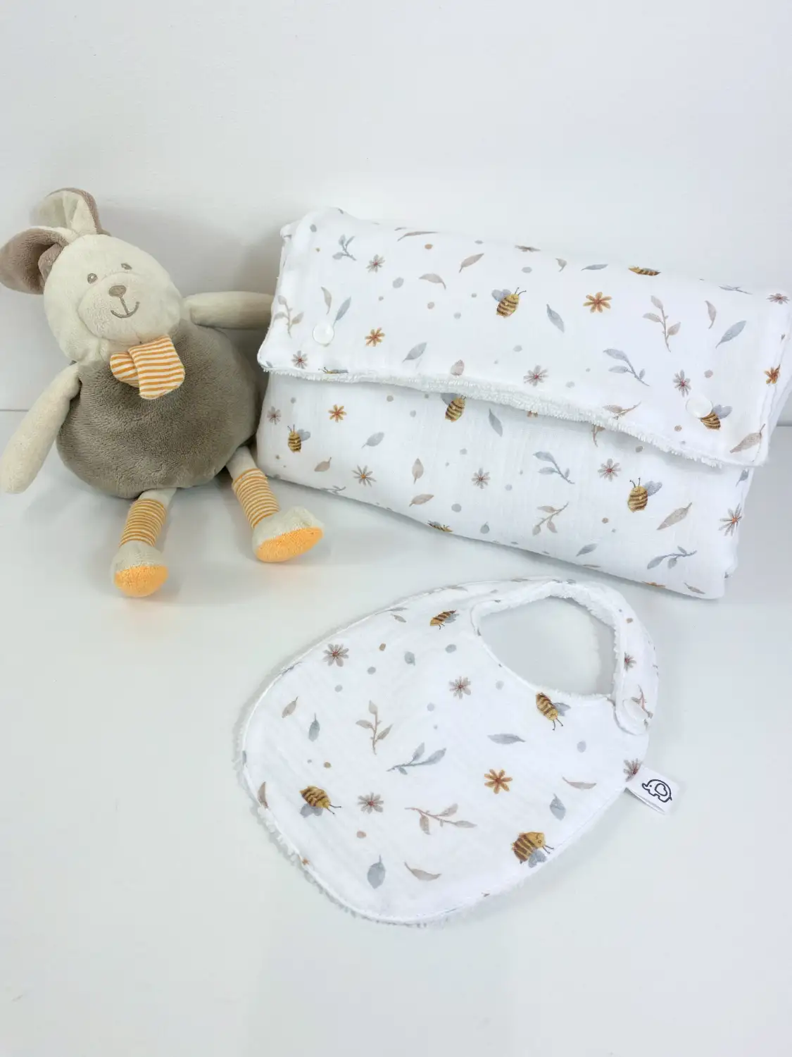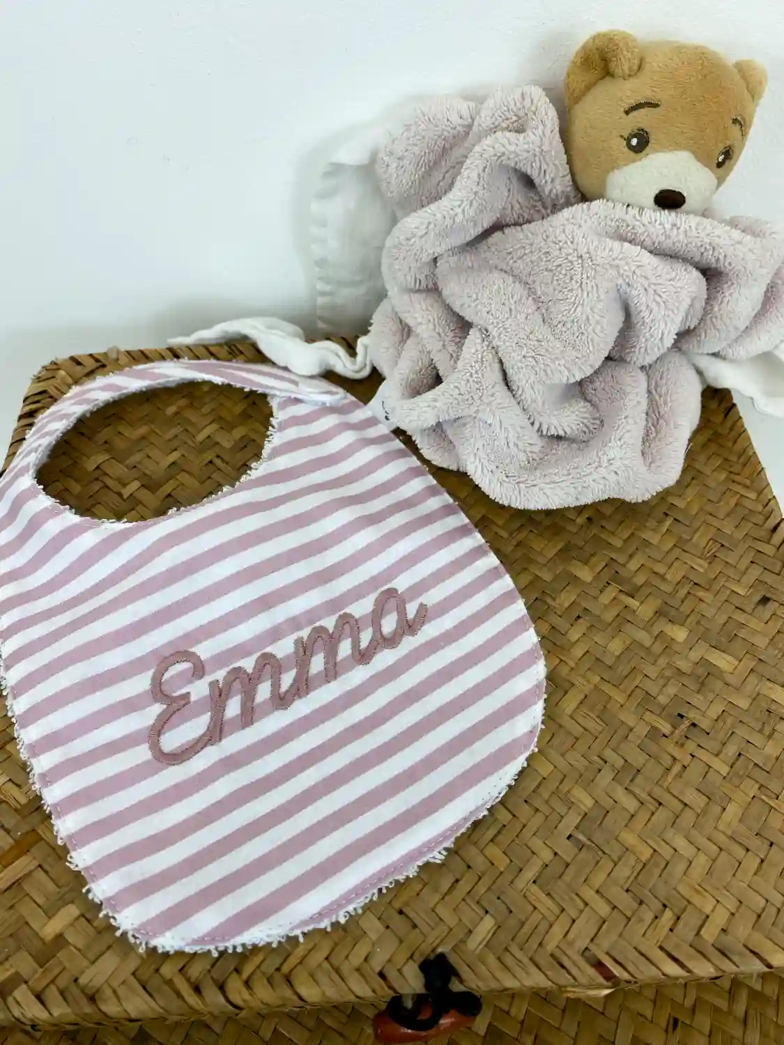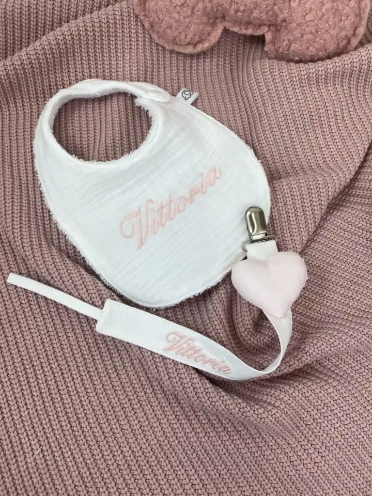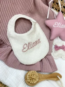 Proteggi i suoi vestitini con stile e la morbidezza del fatto a mano. Il nostro bavaglino personalizzato neonata è l’unione perfetta tra estetica e funzionalità. Ogni pezzo è unico: puoi scegliere di riceverlo neutro per metterne in risalto la fantasia o renderlo speciale con ricamo del nome personalizzato.