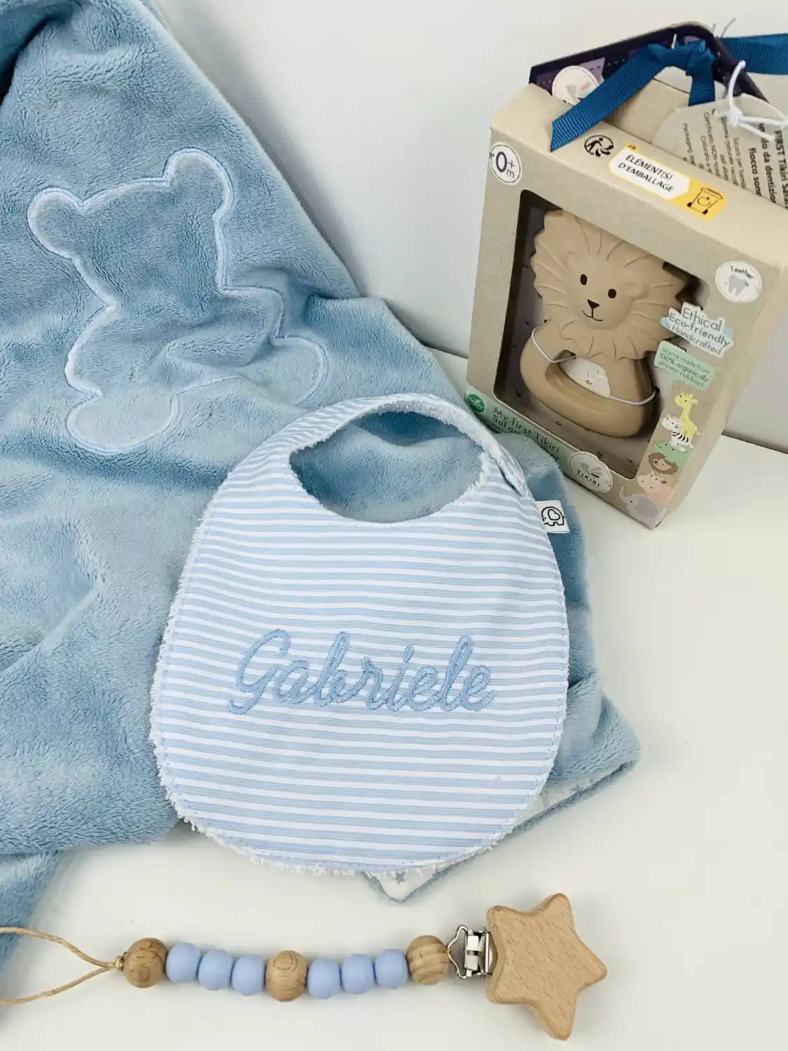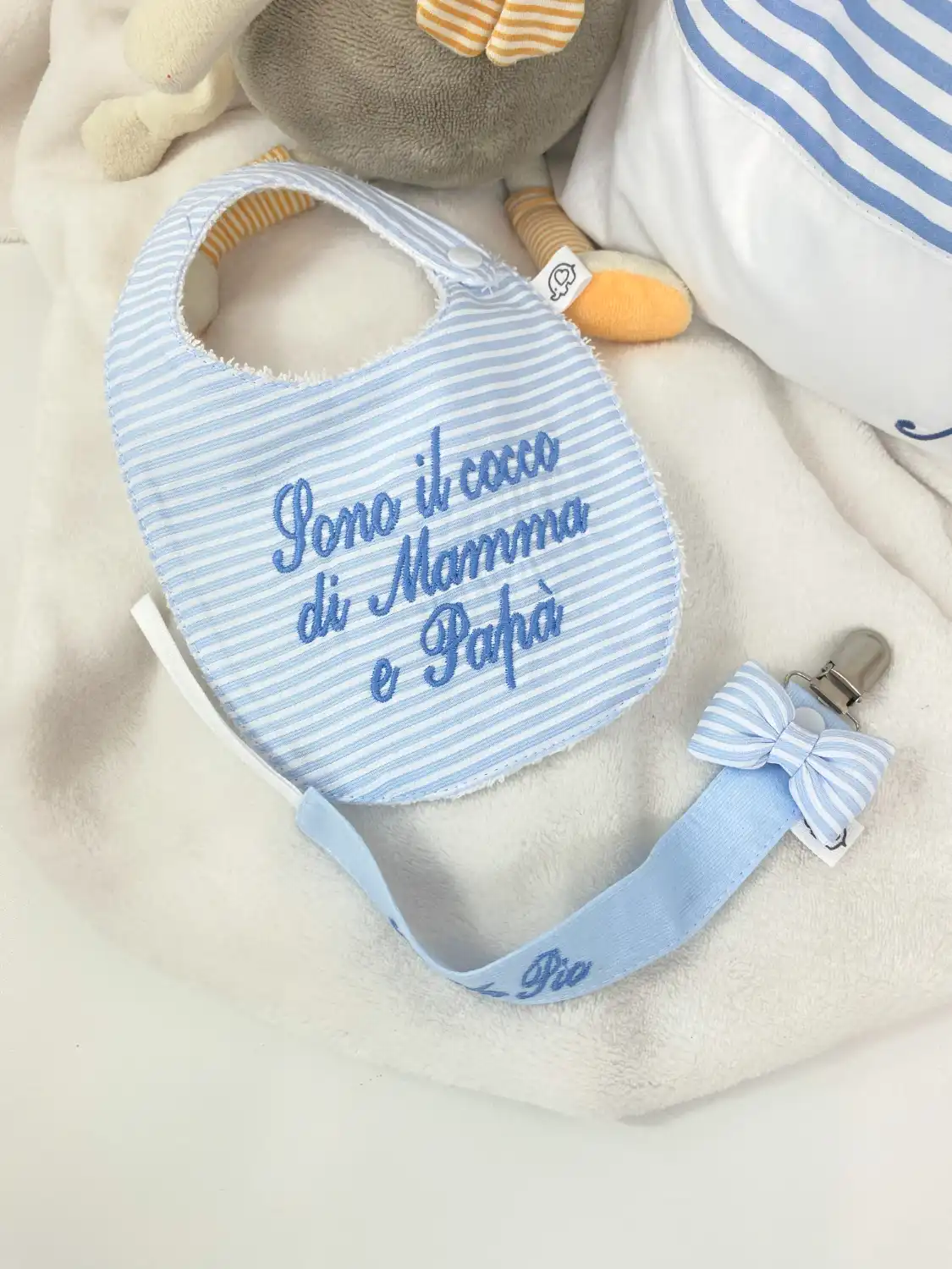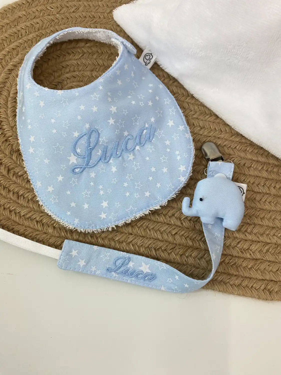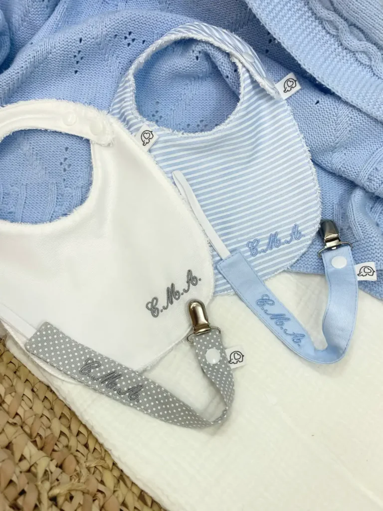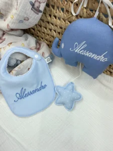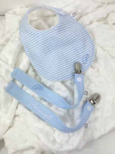 Se stai cercando un’idea regalo che colpisca nel segno, il bavaglino con nome è la scelta ideale. Completa il tuo set aggiungendo uno dei nostri porta ciuccio per creare un kit coordinato indimenticabile.