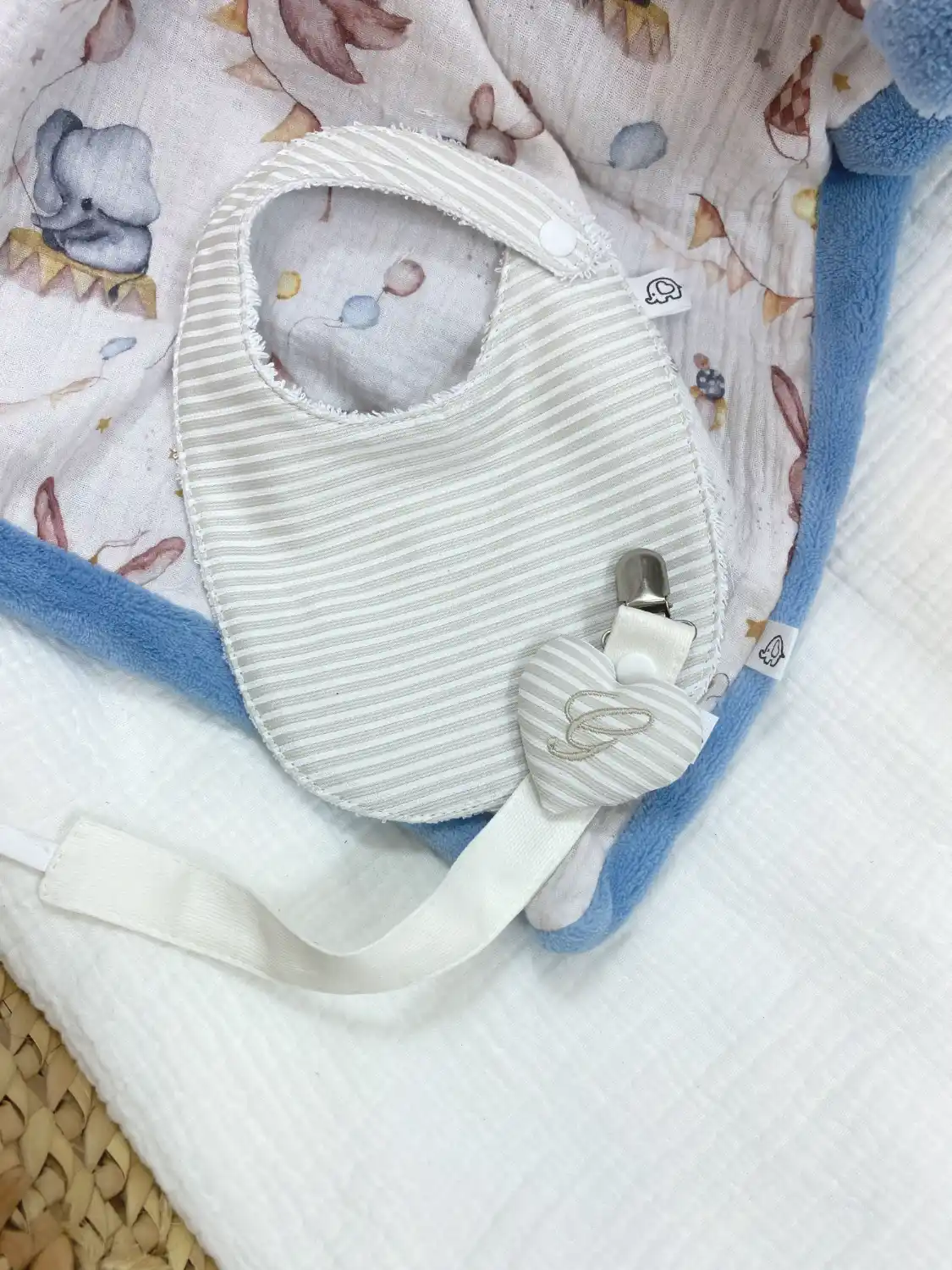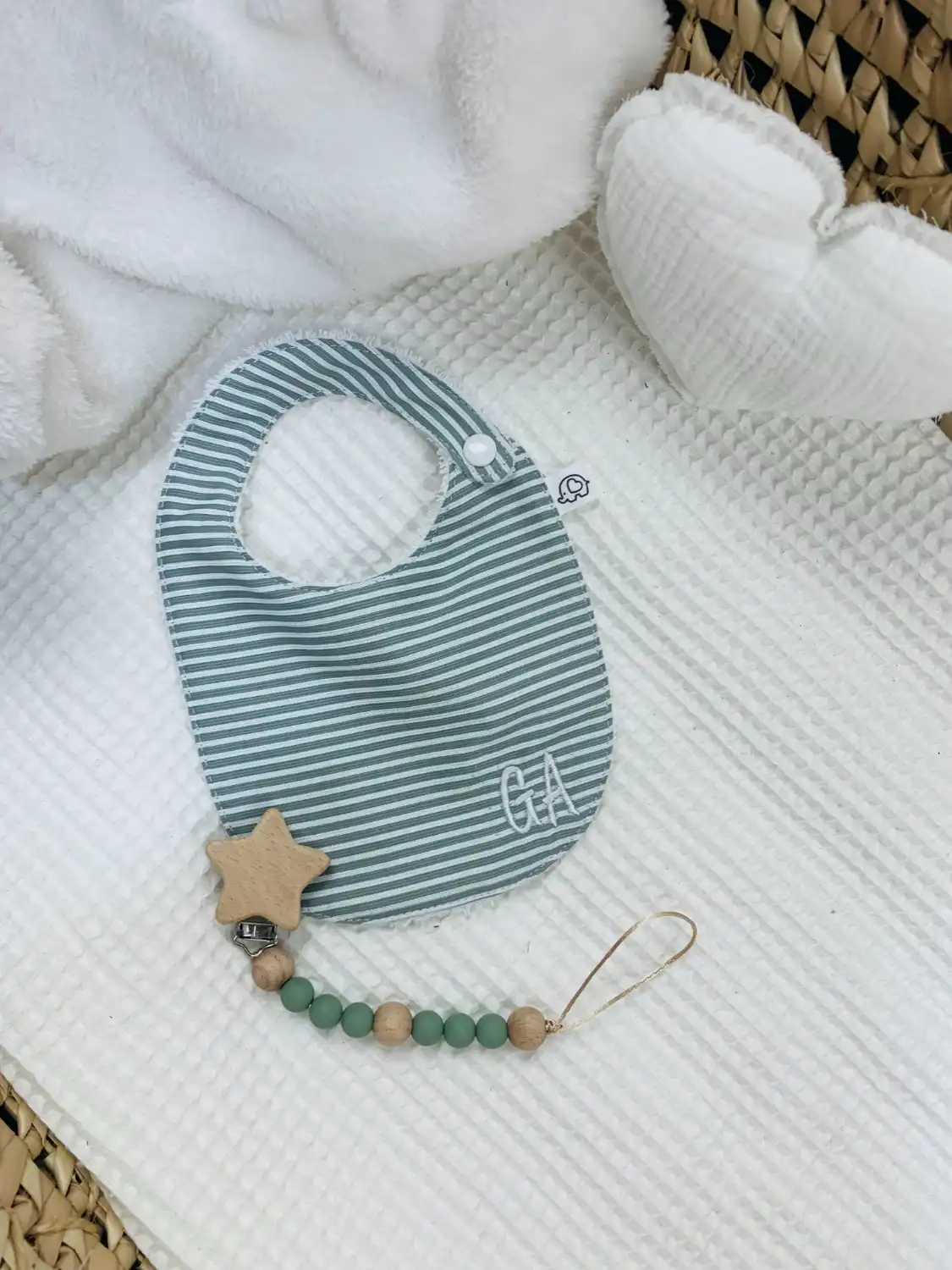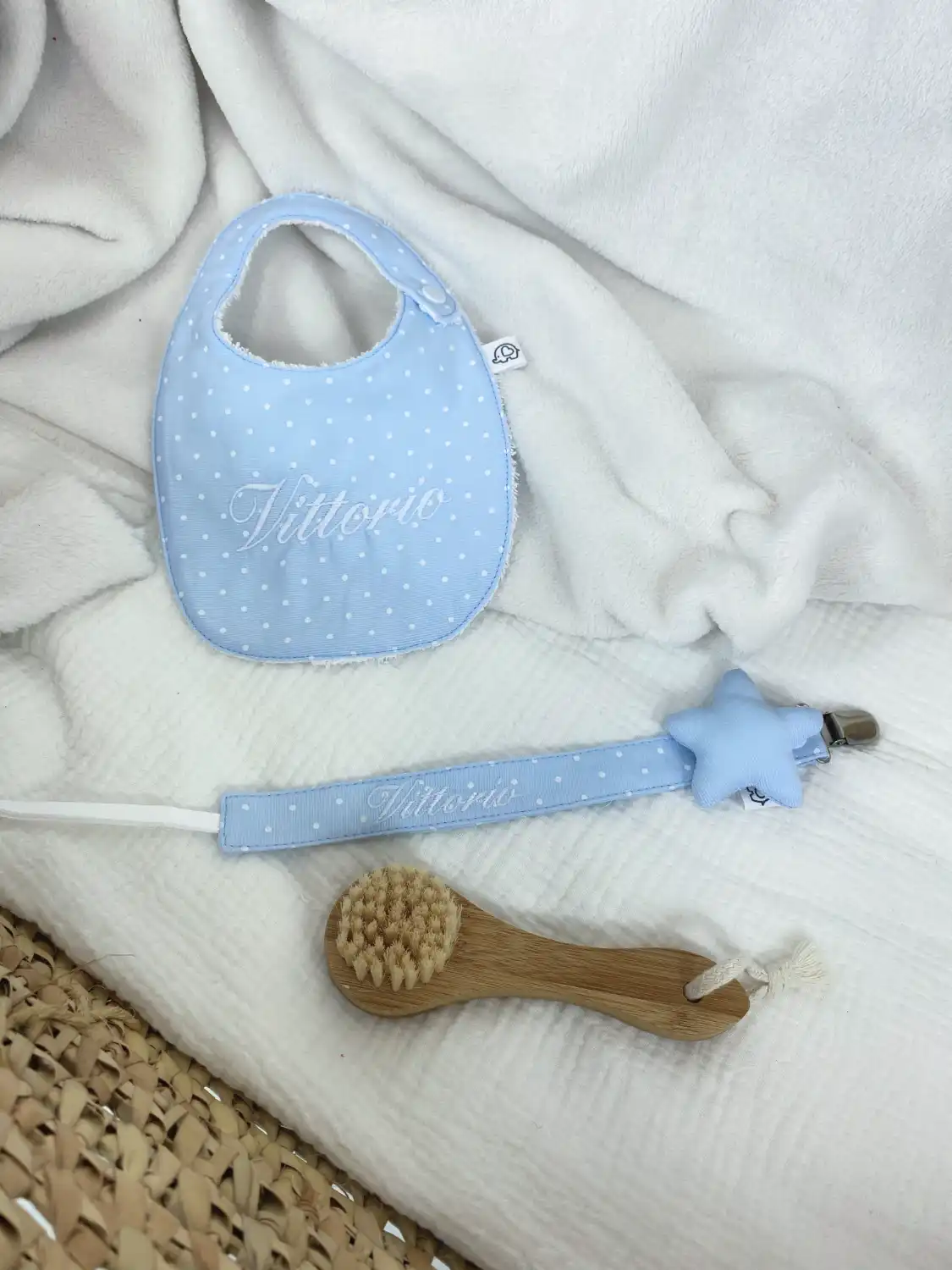 Se stai cercando un’idea regalo che colpisca nel segno, il bavaglino con nome è la scelta ideale. Completa il tuo set aggiungendo uno dei nostri porta ciuccio per creare un kit coordinato indimenticabile.
