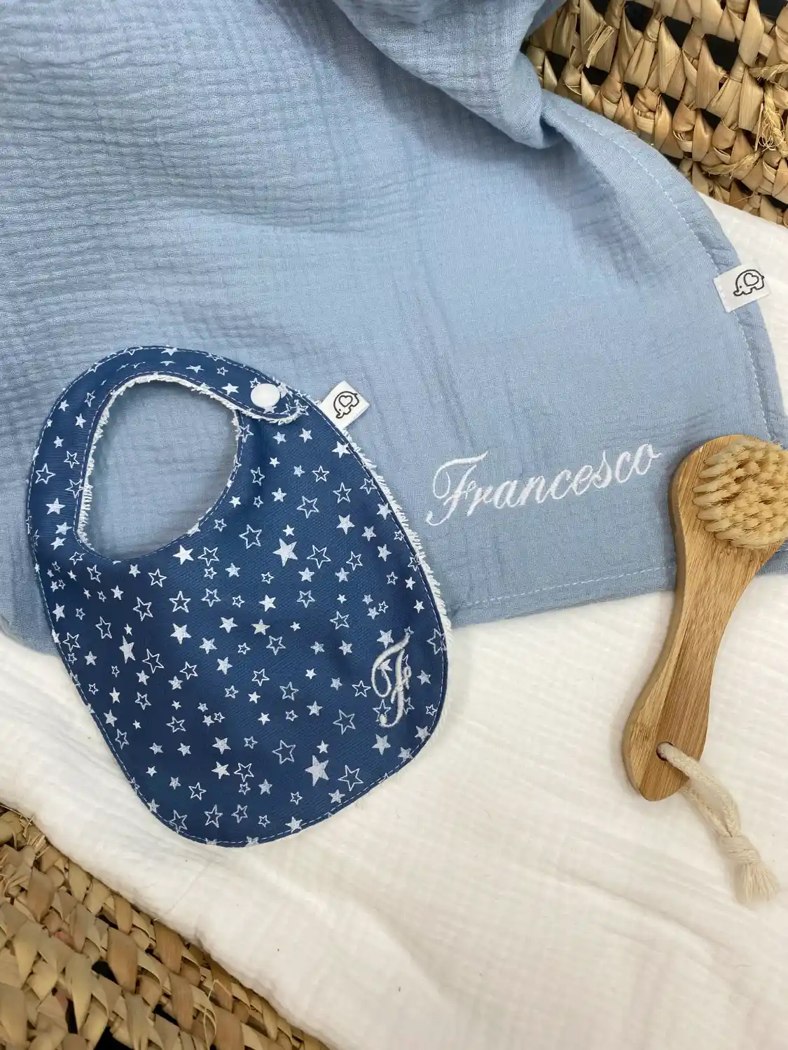 Proteggi i suoi vestitini con stile e la morbidezza del fatto a mano. Il nostro bavaglino personalizzato neonato è l’unione perfetta tra estetica e funzionalità. Ogni pezzo è unico: puoi scegliere di riceverlo neutro per metterne in risalto la fantasia o renderlo speciale con  ricamo del nome personalizzato.