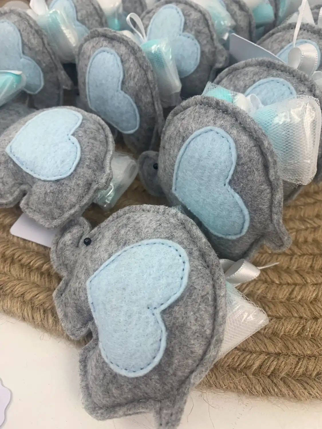 Scegliere la bomboniera elefantino con fiocchetto significa regalare ai propri invitati un pezzetto di artigianato italiano, lontano dai prodotti industriali tutti uguali. Ogni elefantino è tagliato e cucito a mano, pensato per diventare un ricordo duraturo e speciale della Nascita o del Battesimo del tuo bimbo.