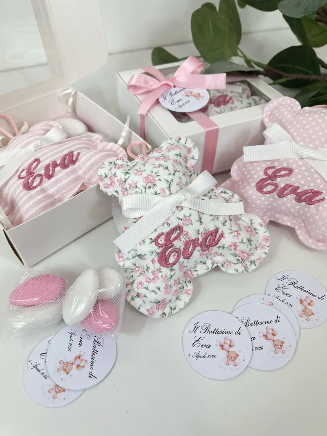 Puoi indicare il nome del bimbo o i dettagli desiderati nelle note dell'ordine al momento del Checkout. Trattandosi di prodotti fatti a mano, ogni creazione è unica e originale.