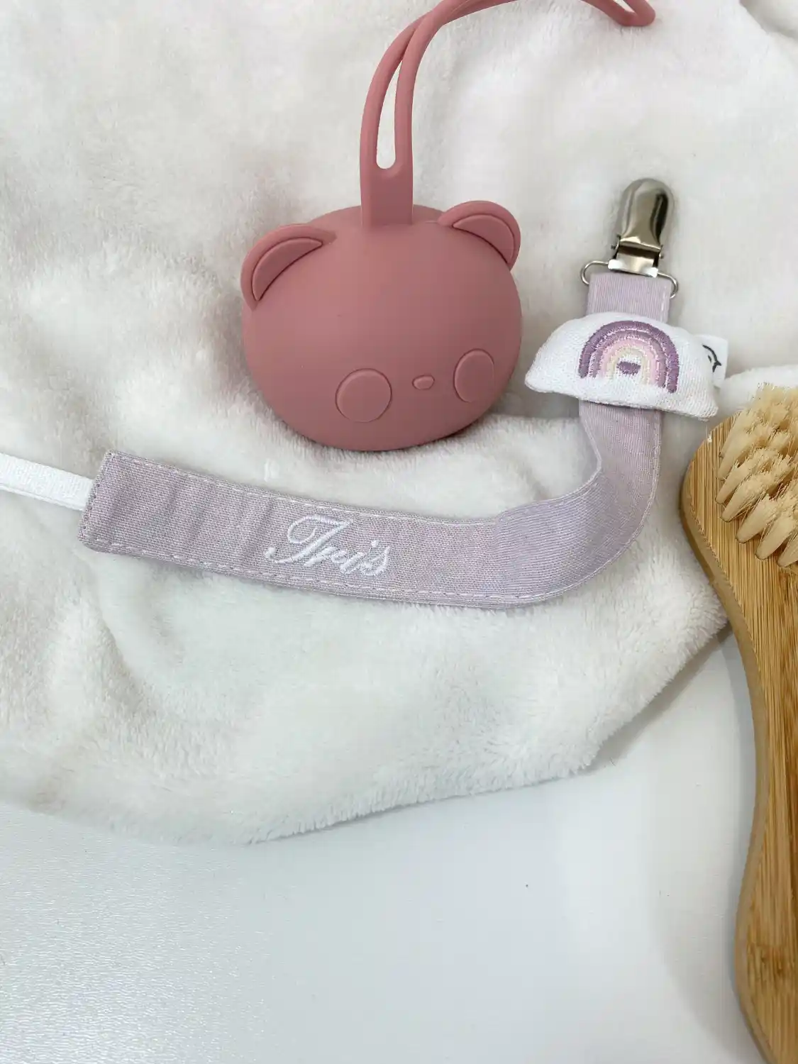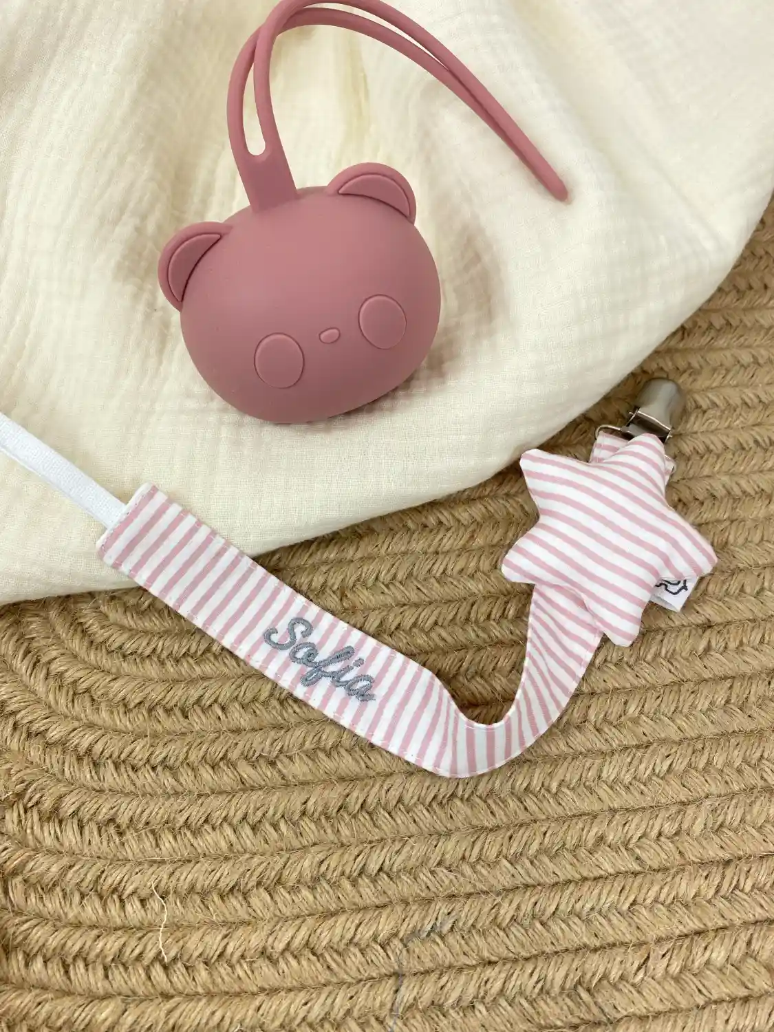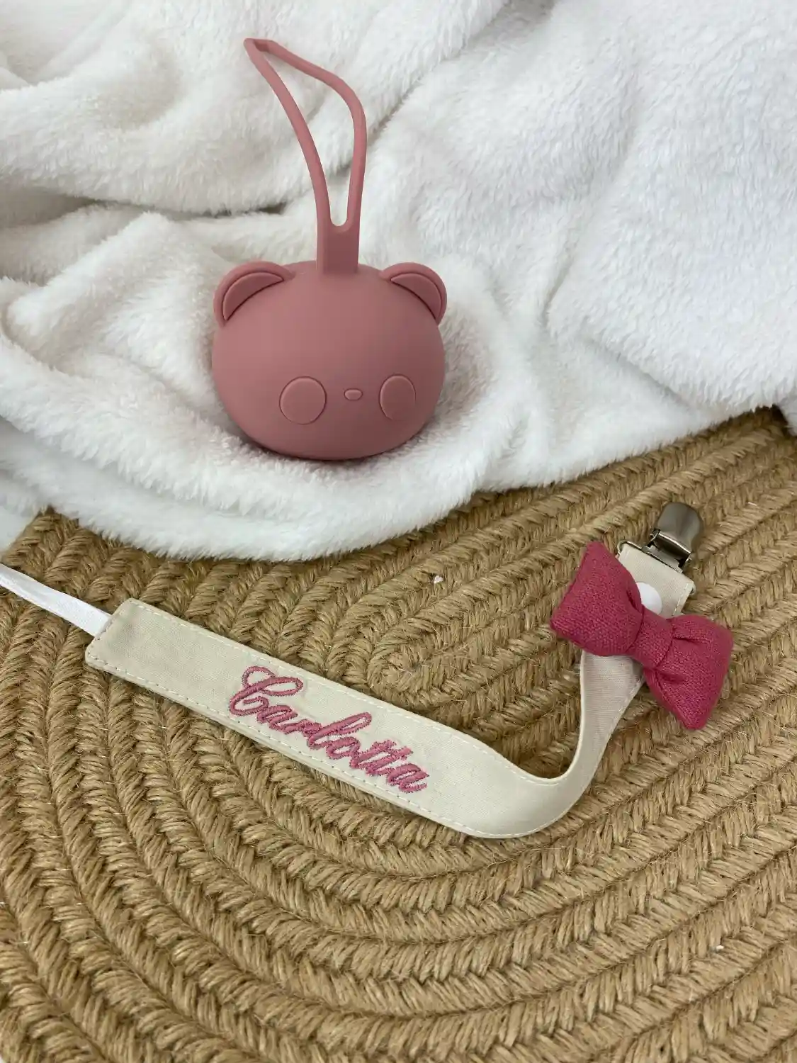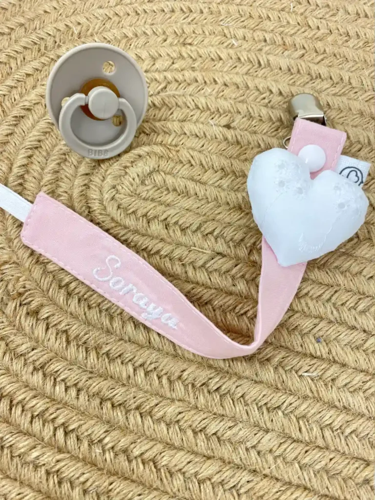 Rendi unico ogni momento della tua bambina con la nostra elegante catenella portaciuccio bimba personalizzata. Realizzata a mano in puro cotone sicuro e traspirante, è l’accessorio perfetto per non perdere mai il ciuccio e aggiungere un tocco di dolcezza ai suoi outfit.