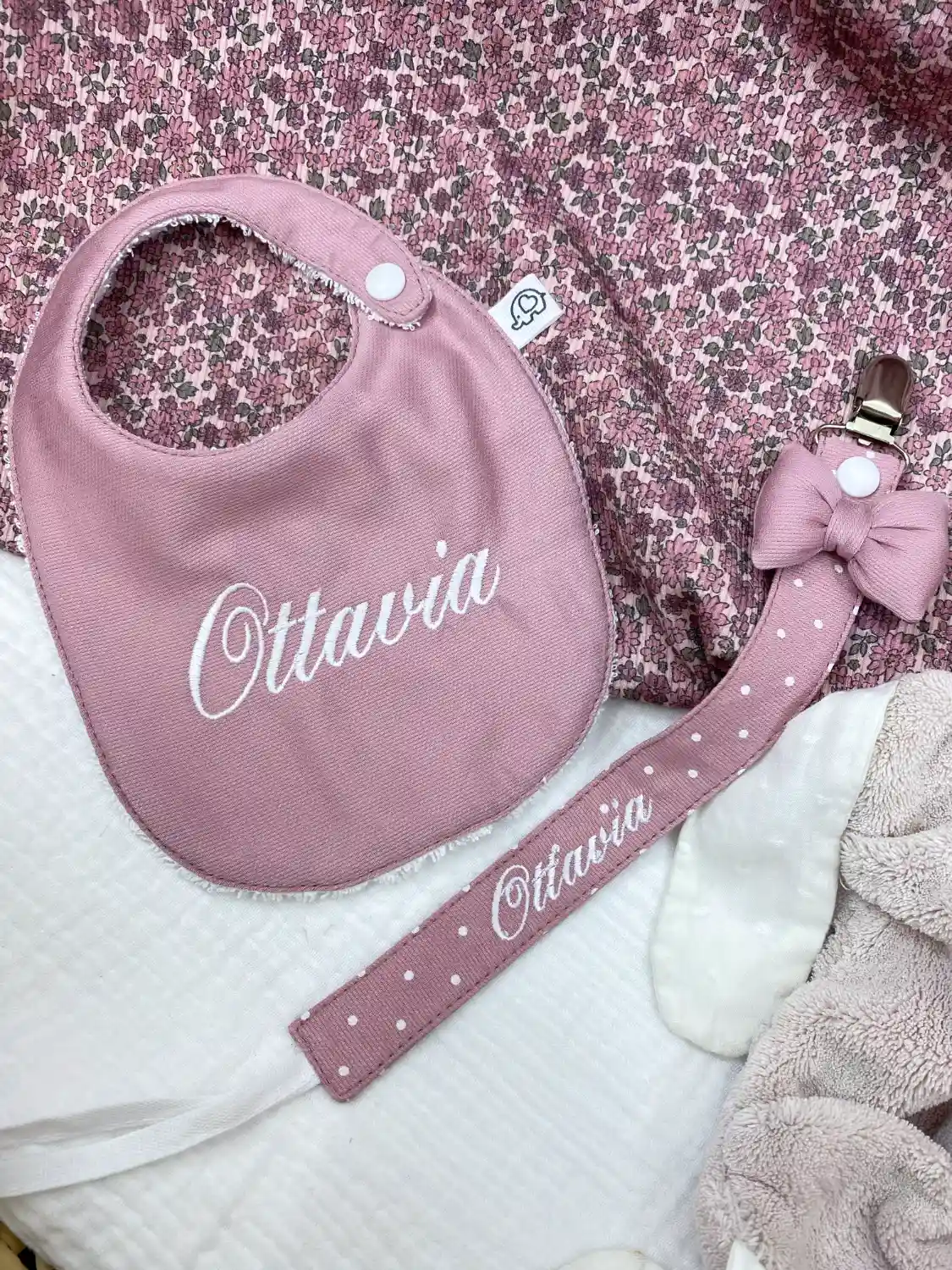 Ogni pezzo è realizzato artigianalmente prestando la massima attenzione ai particolari. Il nome della tua bambina viene finemente ricamato sul nastro in cotone, trasformando un semplice accessorio in un dolcissimo ricordo.