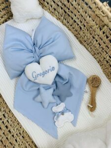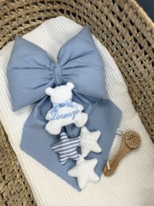 OPZIONE COME DA FOTO: Inserisci nome da ricamare , scegli il fiocco tra le foto proposte e aggiungi al carrello.