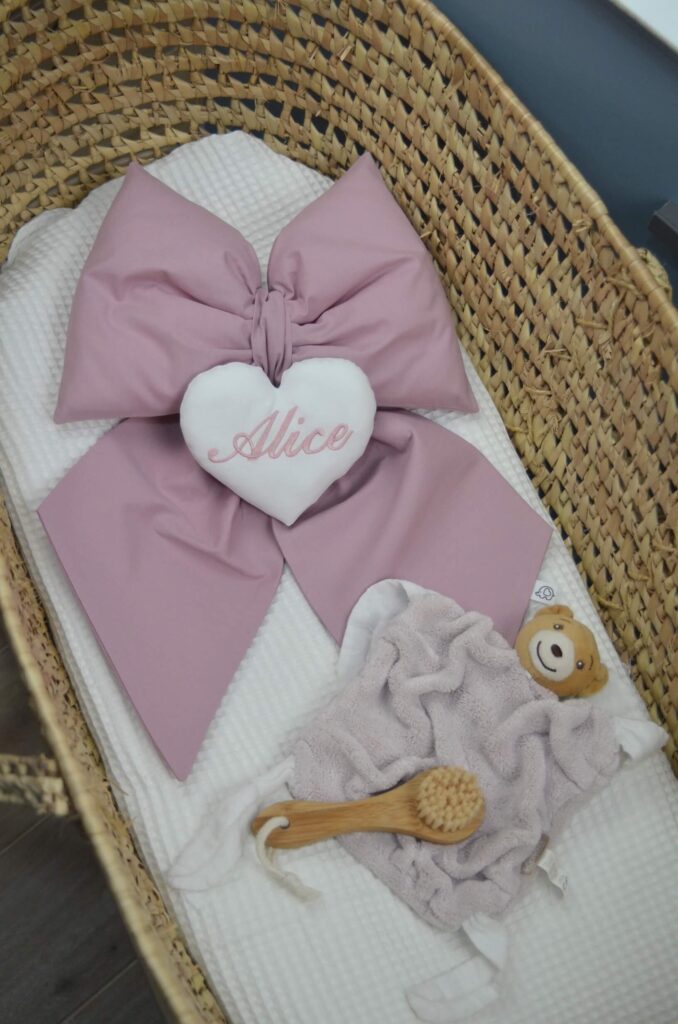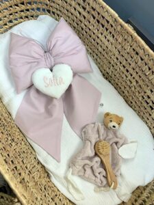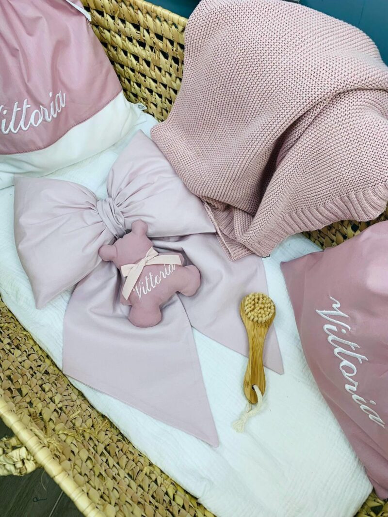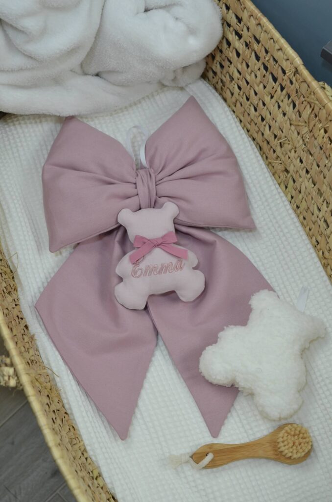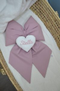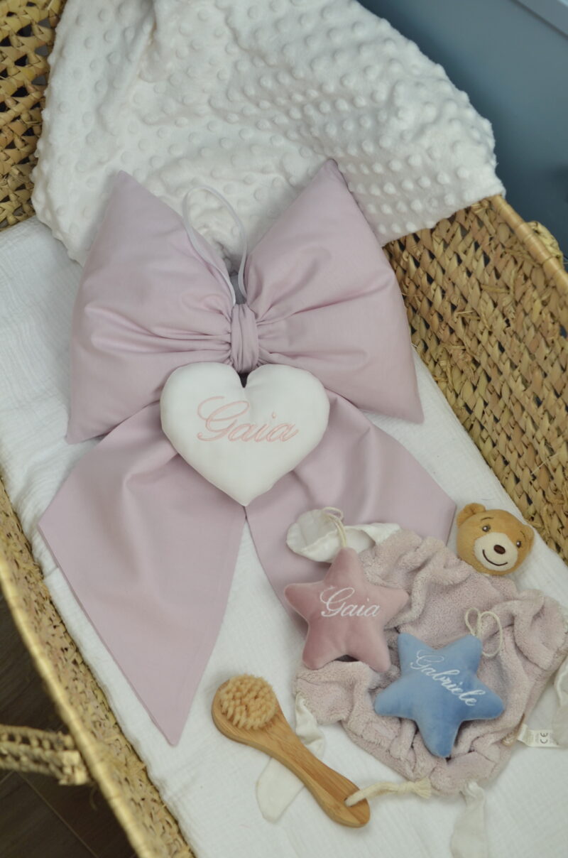 OPZIONE COME DA FOTO: Inserisci nome da ricamare , scegli il fiocco tra le foto proposte e aggiungi al carrello.
