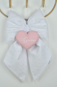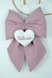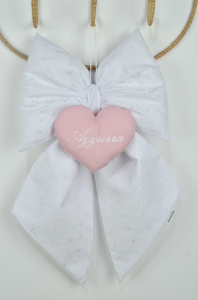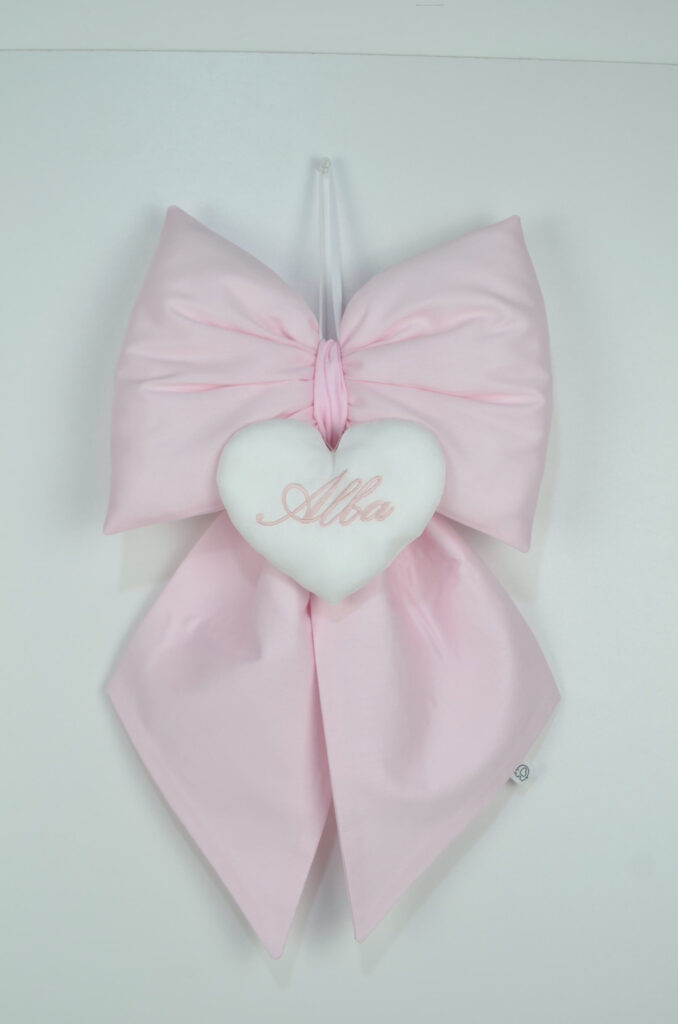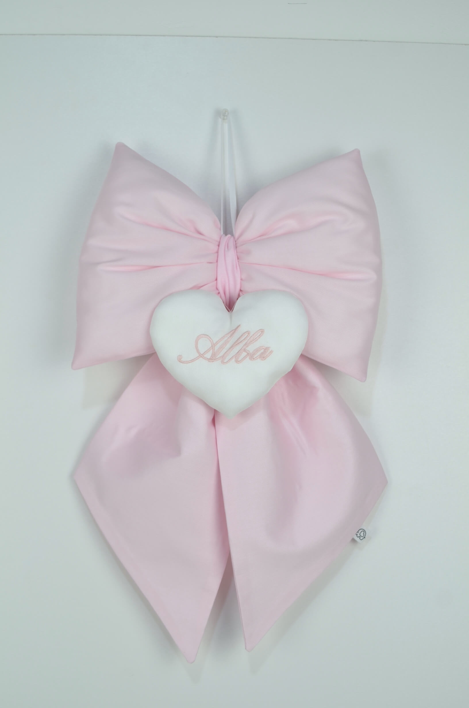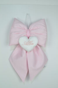 PERSONALIZZA: Scegliendo questa opzione, puoi scegliere passo passo tessuto fiocco, numero e tipologia pendenti, inserire ricamo nome .