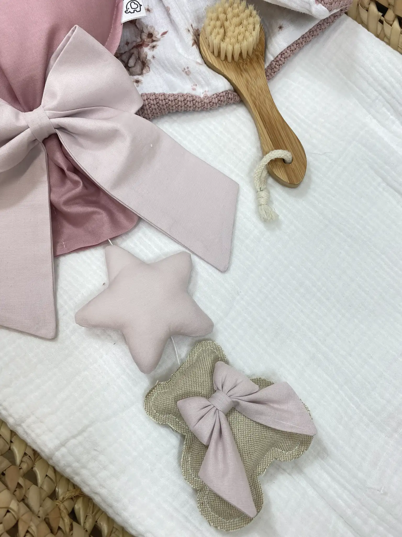 Il fiocco nascita è un oggetto decorativo delicato. Se dovesse prendere polvere, basta tamponarlo leggermente con un panno morbido o utilizzare un rullo levapelucchi.