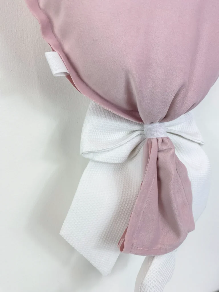 Il fiocco è dotato di un piccolo nastrino in cotone sul retro per facilitarne l’applicazione a porte, pareti o culle.