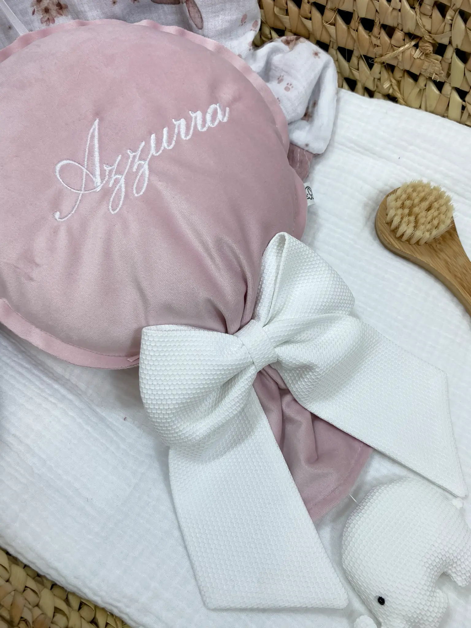 Il fiocco nascita è un oggetto decorativo delicato. Se dovesse prendere polvere, basta tamponarlo leggermente con un panno morbido o utilizzare un rullo levapelucchi.