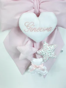 Una volta terminata la sua funzione di annuncio, il nostro fiocco nascita personalizzato rosa si trasforma in un prezioso ricordo di famiglia. Grazie alla qualità dei materiali, potrai conservarlo intatto nella cameretta del tuo bambino, o riporlo nella scatola dei ricordi, tramandando per sempre l’emozione di quel giorno.