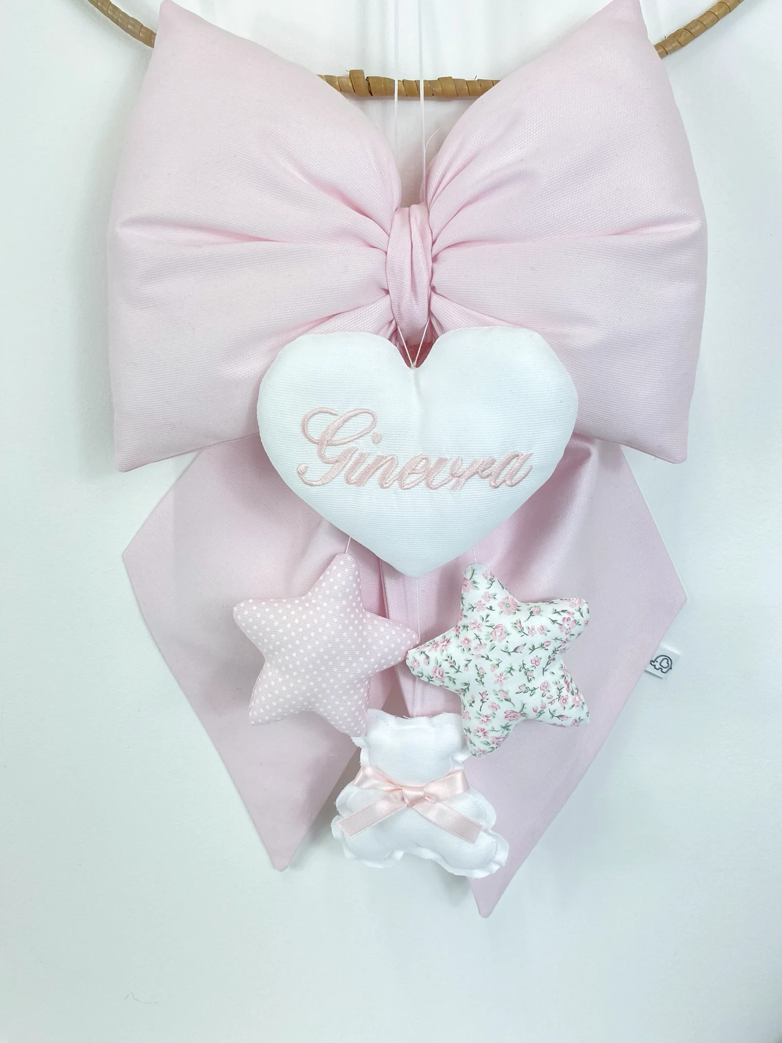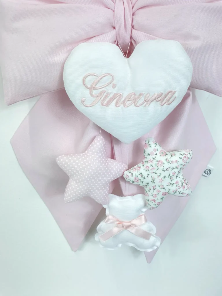 Questo fiocco nascita personalizzato rosa è perfetto per essere appeso alla porta di casa, in ospedale o per decorare con stile la cameretta. Ogni dettaglio è curato per creare un ricordo indimenticabile dei primi momenti della tua piccola.