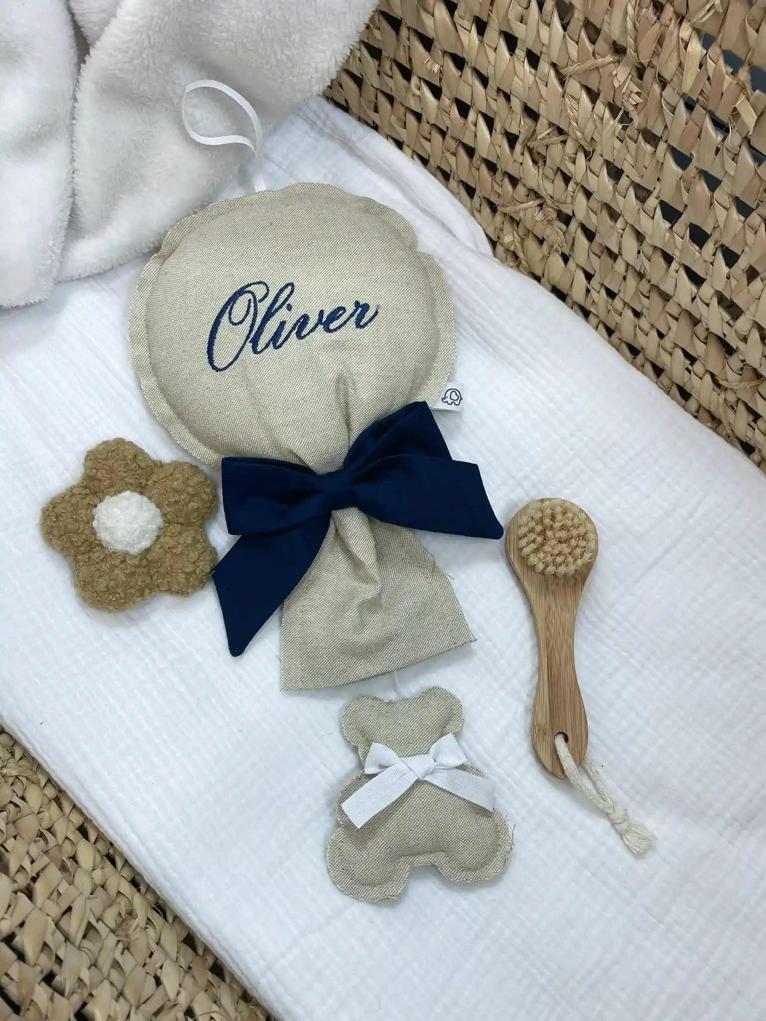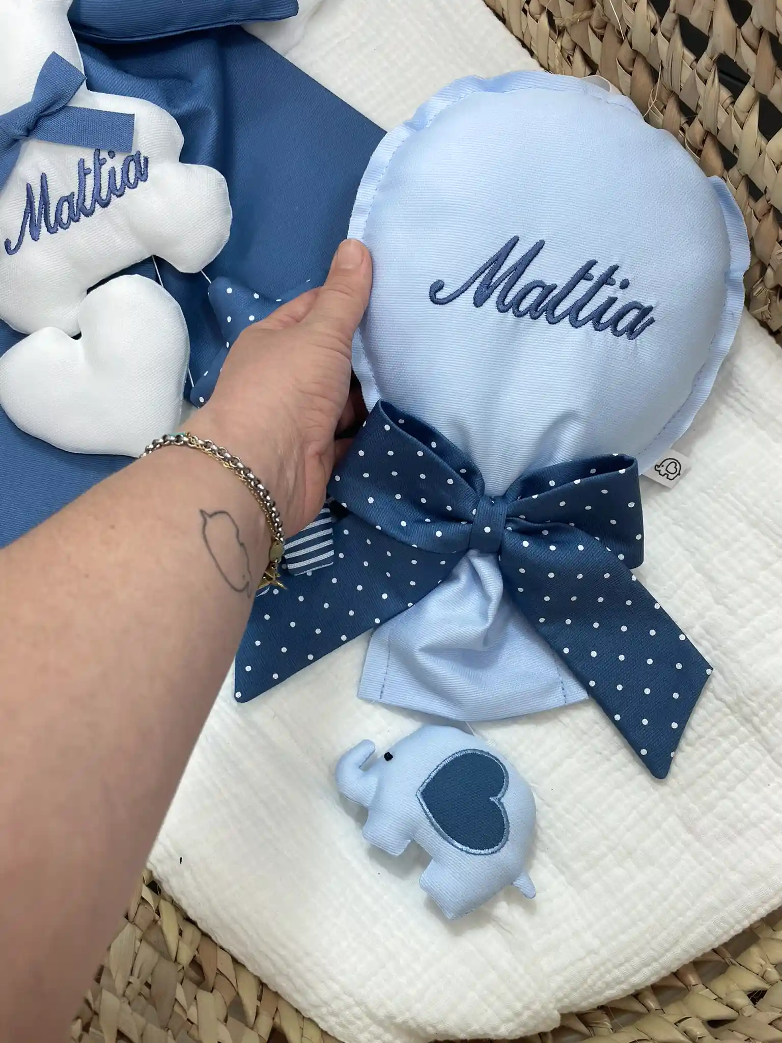 Puoi indicare il nome del bimbo o i dettagli desiderati nelle note dell'ordine al momento del Checkout. Trattandosi di prodotti fatti a mano, ogni creazione è unica e originale.