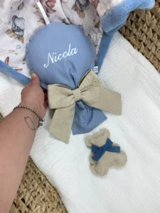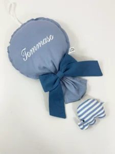 Questo Esclusivo Fiocco Palloncino bimbo piccolo con pendente a scelta è più di una semplice decorazione: è un Dolce ricordo. Il Fiocco Palloncino bimbo 35 cm può essere Personalizzato con il nome del tuo piccolo, trasformandolo in un pezzo Unico e Prezioso. Perfetto come coccarda nascita e decorazione per culla. Scegli la Morbidezza e l’eleganza per celebrare il tuo evento più Importante.