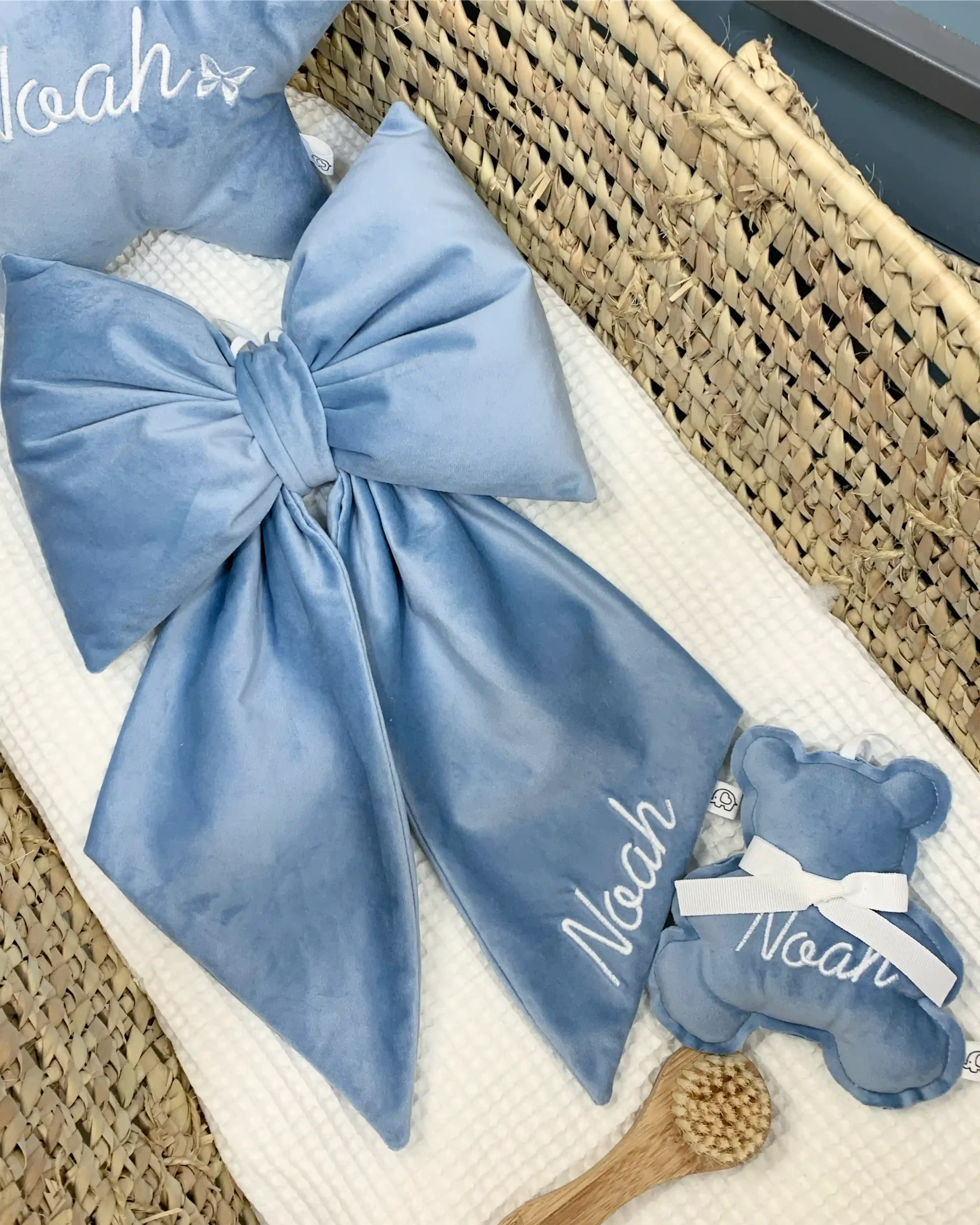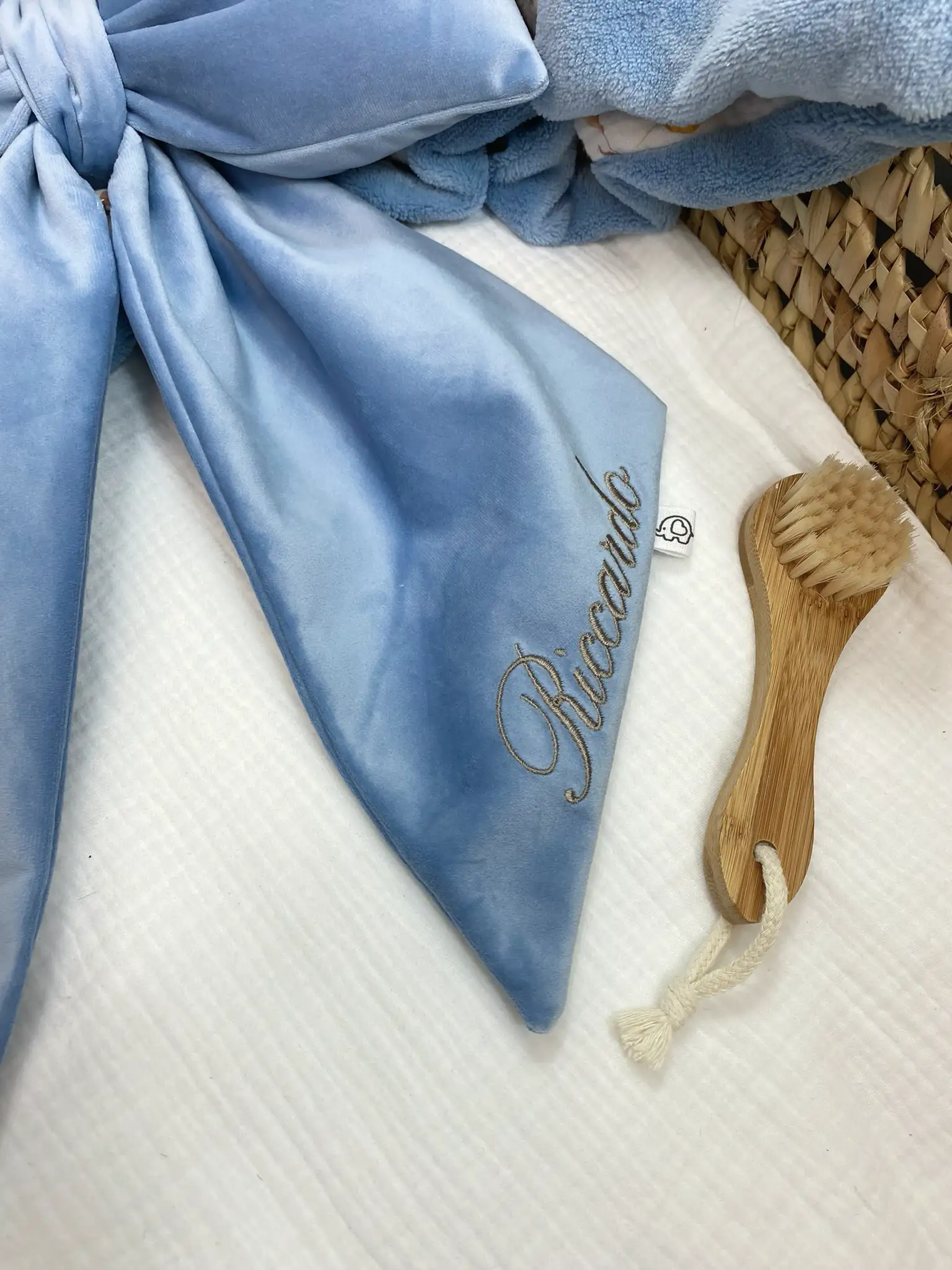 Vuoi completare il set per il tuo bambino? Dai un’occhiata alla nostra Collezione Completa di Accessori Nascita, dove troverai copertine abbinati al tuo Fiocco Velluto nome ricamato su gala