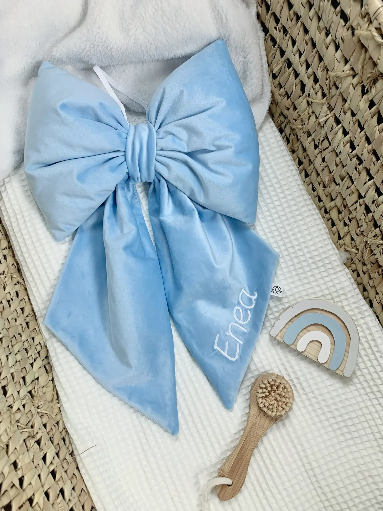 L’Esclusivo Fiocco Velluto nome ricamato su gala è più di una semplice decorazione: è un Dolce ricordo. La coda o gala può essere Personalizzata con il nome del tuo piccolo, trasformandolo in un pezzo Unico e Prezioso. Perfetto come coccarda nascita e decorazione per culla. Scegli la Morbidezza e l’eleganza per celebrare il tuo evento più Importante.
