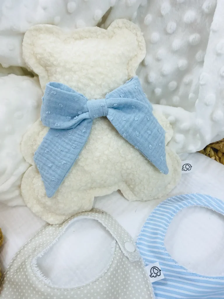 Il nostro orsetto decorativo non è un semplice peluche, ma un complemento d’arredo unico pensato per i più piccoli. La texture ricercata del tessuto bouclé (effetto “orsetto”) si sposa perfettamente con lo stile naturale e boho-chic delle camerette moderne.