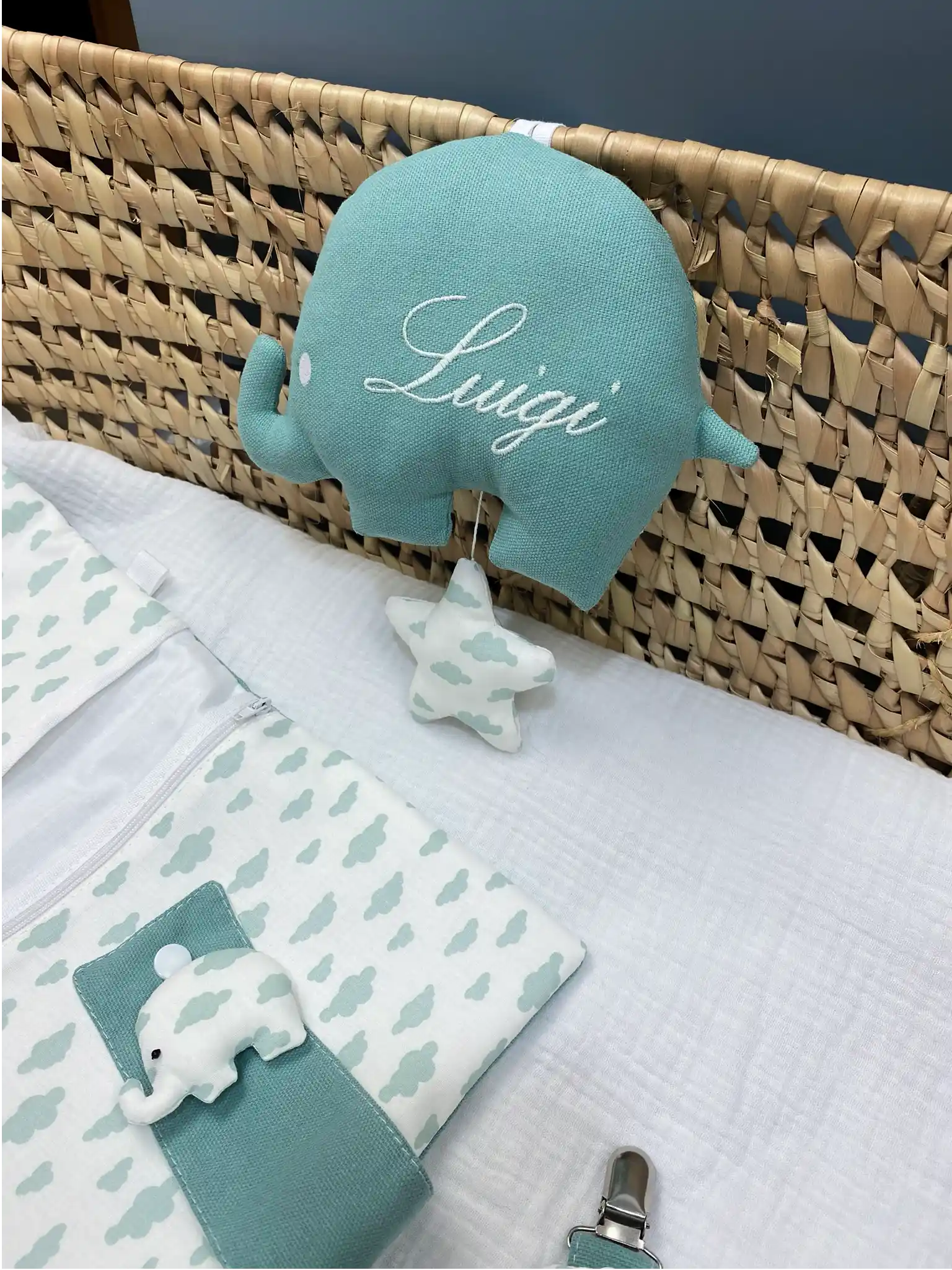 Il nostro Pendente culla elefantino personalizzato è realizzato interamente a mano nel nostro laboratorio, puoi personalizzarlo scegliendo tra una vastissima gamma di tessuti.