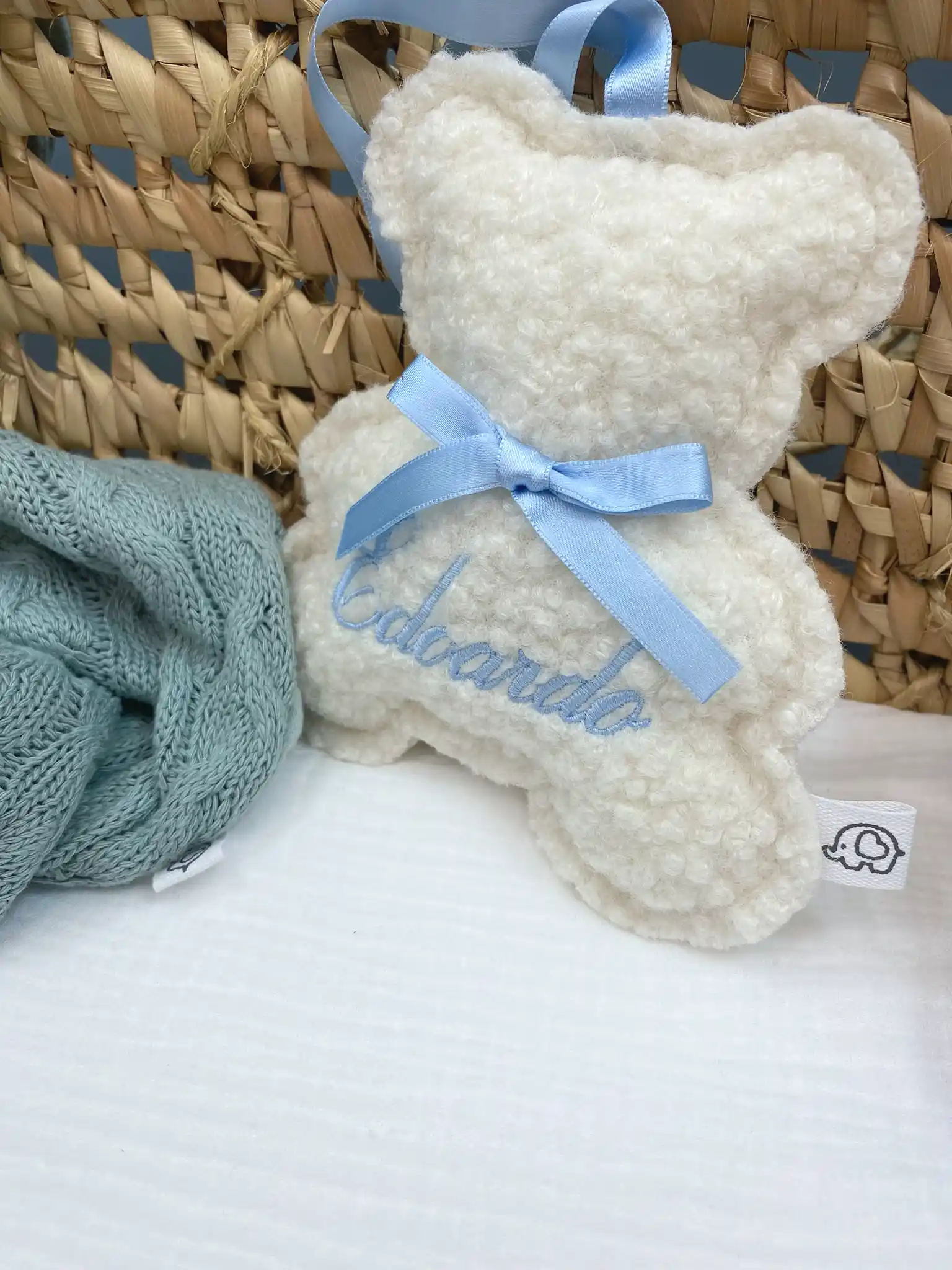 Personalizzazione: Il nome è ricamato con cura, rendendo ogni orsetto un pezzo unico e indimenticabile.